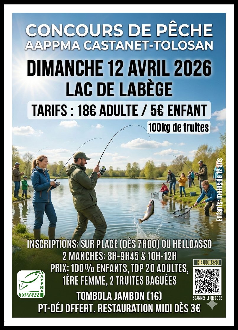 Comme chaque année, nous vous invitons à nous rejoindre pour notre grand concours de pêche au lac de Labège le dimanche 12 avril 2026 !